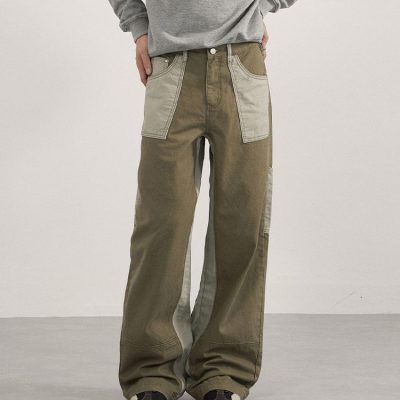 OEM Custom Work Pants: Vintage Color-Blocked Straight-Leg Denim Supply