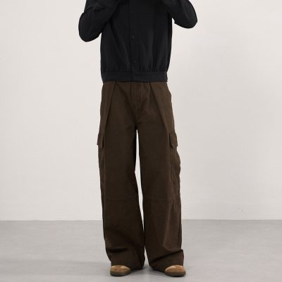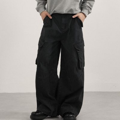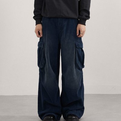 Wholesale Loose Retro Denim Cargo: Custom American Washed Silhouette Trousers (Unisex Fit)