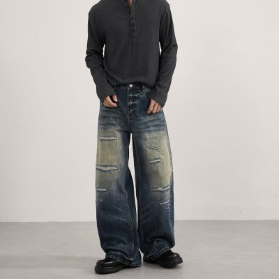 OEM Heavyweight Distressed Denim Manufacturer: Patched & Ripped Wide-Leg Jeans