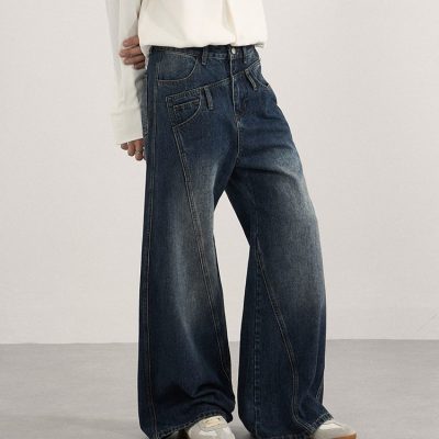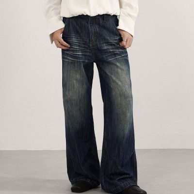 OEM Factory: Distressed American Retro Jeans with Pleated A-Line Cut | Unisex Denim Wholesale