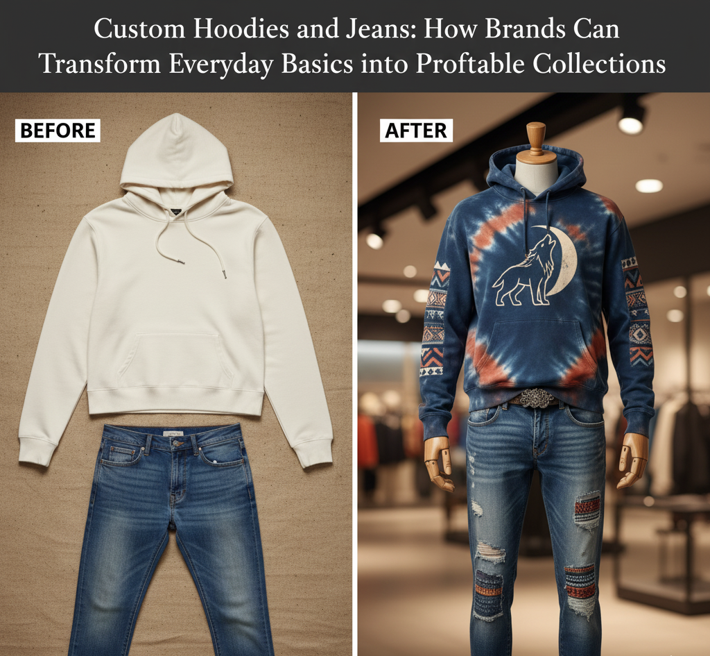 Custom Hoodies and Jeans: How Brands Can Transform Everyday Basics into Profitable Collections