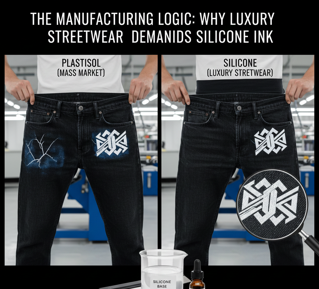 For streetwear brands producing baggy, heavy, or stretch denim, the switch to Silicone is a defensive move against cracking and dye migration, and an offensive move to increase the perceived value of the garment. It turns a graphic print into a structural component of the jeans.