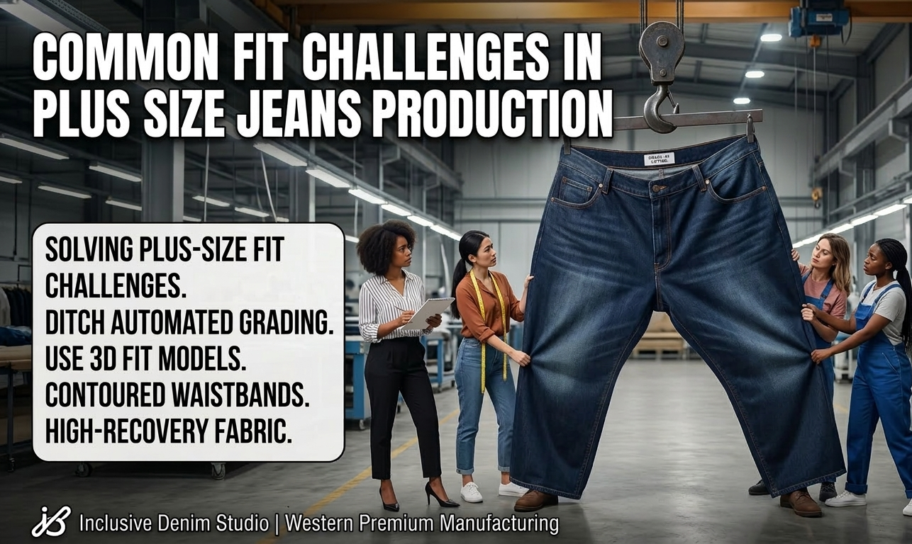 Plus-size customers are fed up with jeans that gap at the waist, sag at the knees, or slide down when they sit. To manufacture a successful premium plus size jean for Western markets, you have to get realistic about where standard grading fails. Here are the most common (and expensive) fit challenges you will face in production.