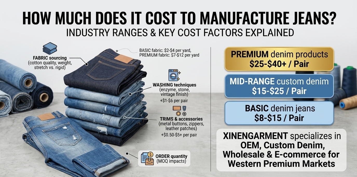The short answer is that the cost can vary quite a lot. Denim products involve several stages of production, including fabric sourcing, pattern making, sewing, washing, and finishing. Small design changes or different materials can quickly change the final manufacturing cost.