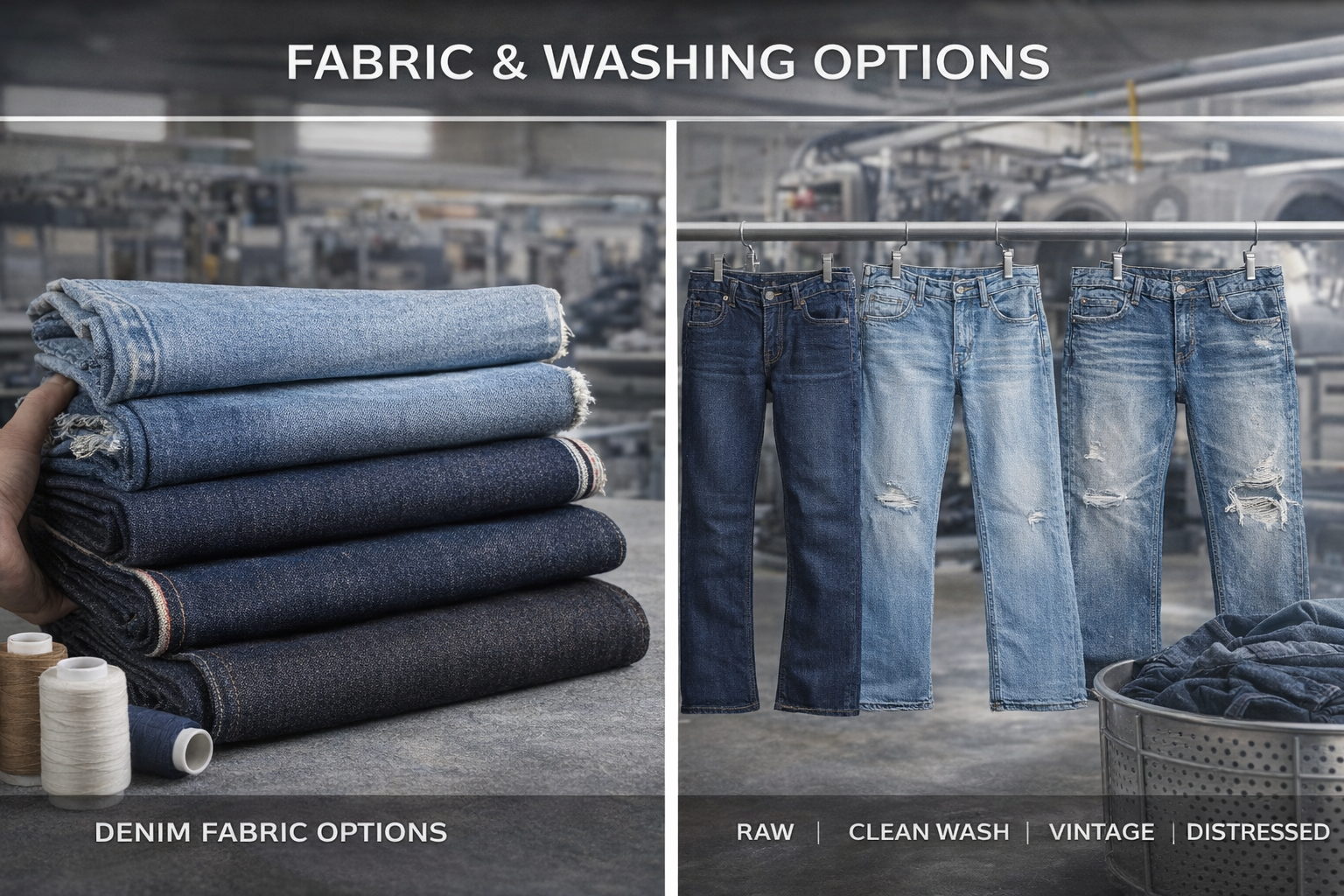 Denim fabric choice is one of the most critical steps in custom jeans development.