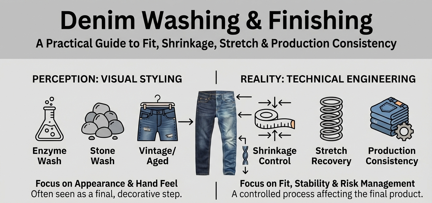 This hub page explains how denim washing and finishing work in practice, what decisions matter most, and how washing choices connect directly to fit and production outcomes.