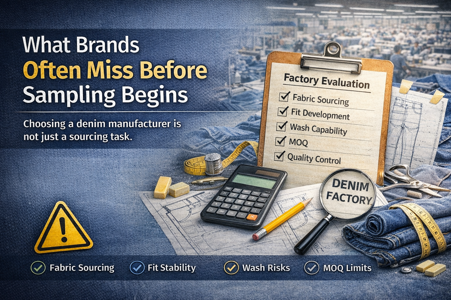 Many brands focus on price, photos, or factory size at the beginning. Those factors matter, but they are rarely the reason a denim project succeeds or fails. In real production, problems usually come from misalignment — between design intent and factory capability, between sampling logic and bulk reality, or between what was promised and what can be repeated at scale.