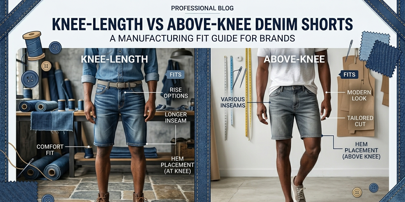 When fashion importers and e-commerce brands submit their summer Tech Packs, the most critical decision often isn’t the wash recipe—it is the inseam length. Denim shorts (jorts) are a staple category, but the market is strictly divided into two distinct silhouettes: knee-length and above-knee styles.