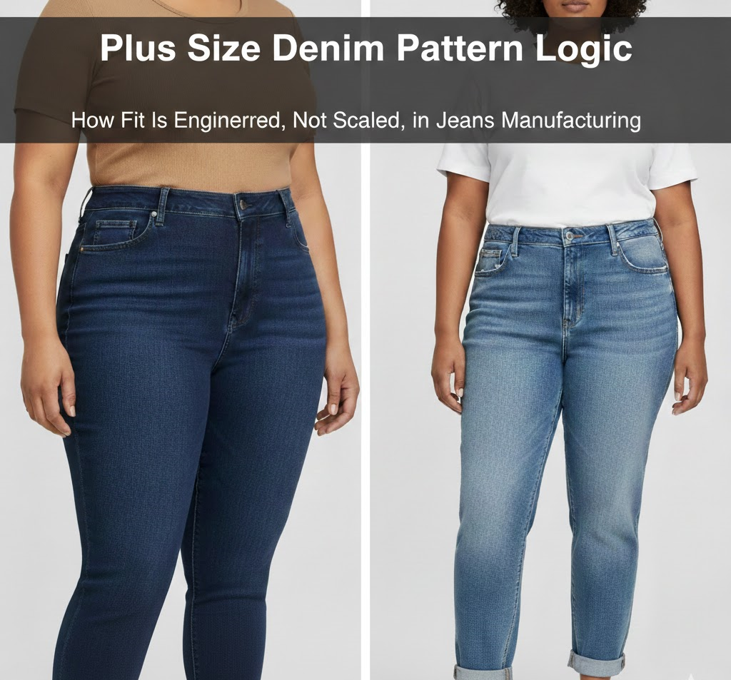 This Guide explains how plus size denim patterns are developed in real production, what usually goes wrong, and how fit risks are reduced before bulk manufacturing.