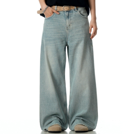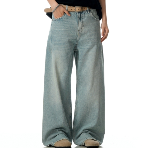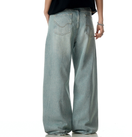 Product Name | Custom Retro Washed Jeans | Wholesale Baggy Straight-Leg Denim |