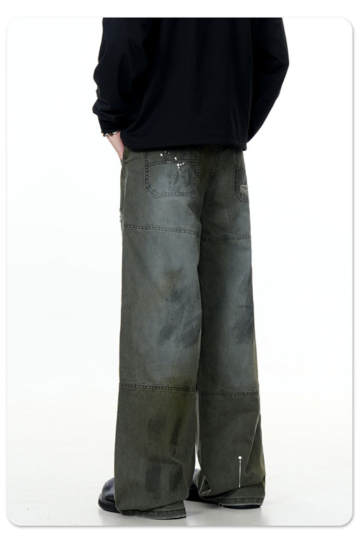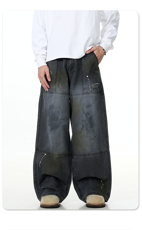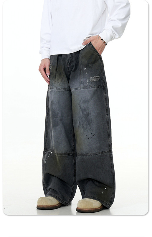 Product Name | Distressed Straight-Leg Overalls – Unisex Adjustable Belt Splash-Ink Casual Jeans |