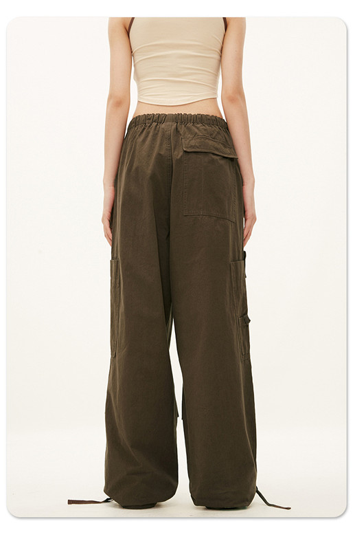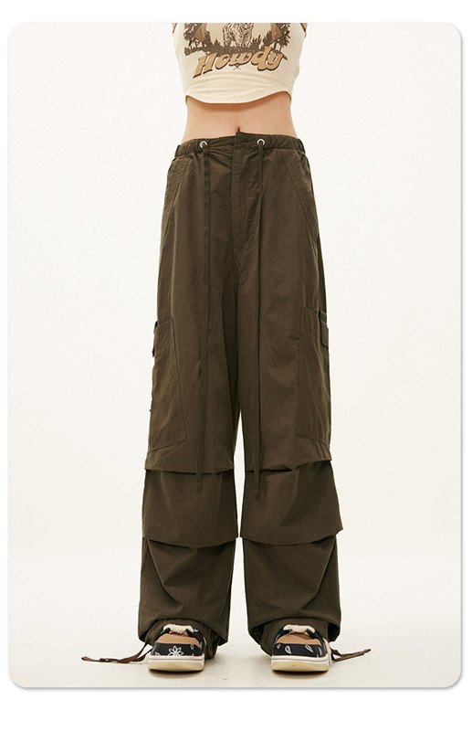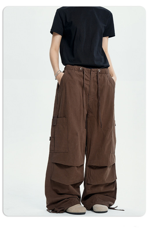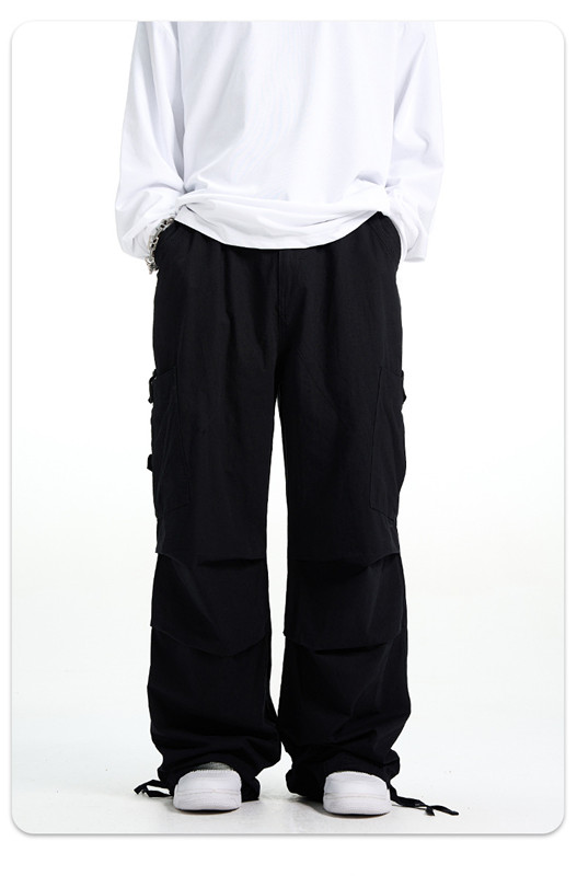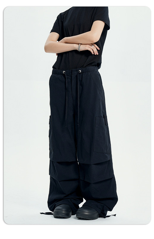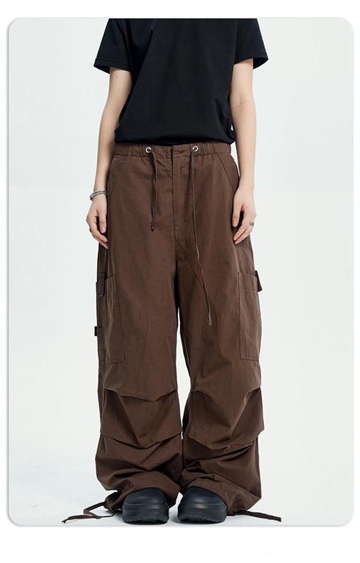 Product Name | Custom Unisex Cargo Pants – Distressed Wide-Leg Trousers with Drawstring, Adjustable Elastic Waist & Pleated Loose Fit |
