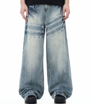 Distinctive Lightning Wash: Our unique washing process creates a striking “lightning” effect on the denim, giving each pair a vintage, one-of-a-kind look that sets it apart.