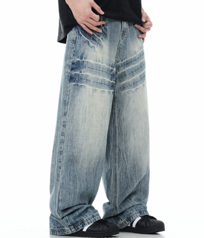 Elevate your brand’s collection with our Wholesale Retro Lightning-Effect Jeans. Designed for the high-street fashion market, these jeans blend a unique distressed finish with a timeless straight-leg drape, making them a standout piece for any brand.