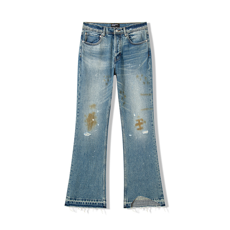 Product Name | Custom Mud-Dyed Jeans with Knife-Cut & Micro Flared Hems | Men’s High Street Trendy Fit |
