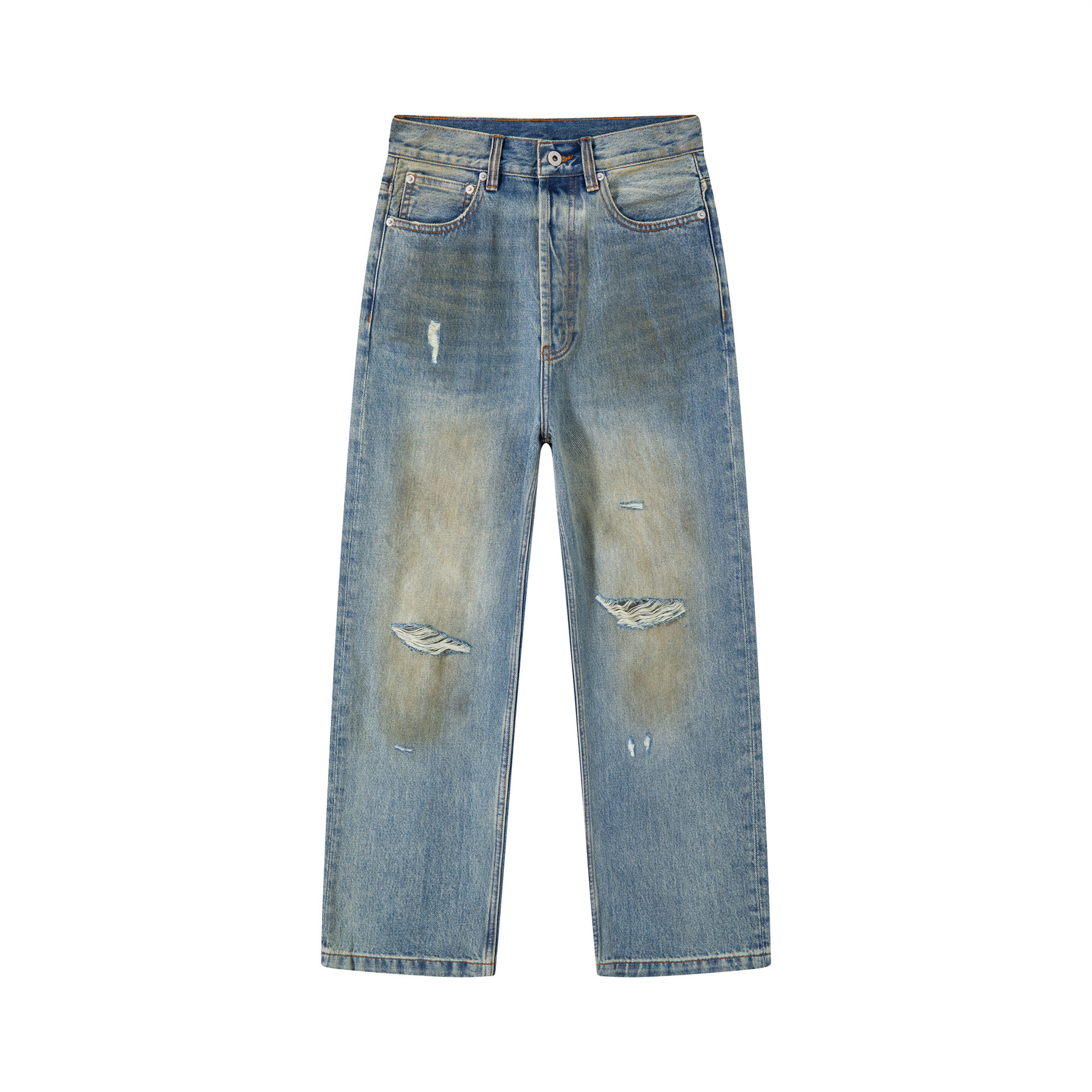 Wholesale Custom Mud-Dyed Distressed Jeans for Streetwear Brands