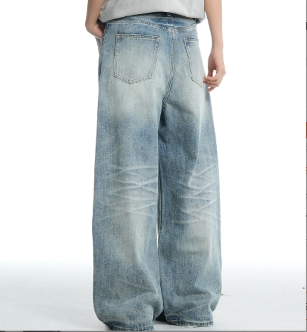 Product Name | Wholesale Custom Washed Jeans | Retro Cat Whisker Straight-Leg Denim |