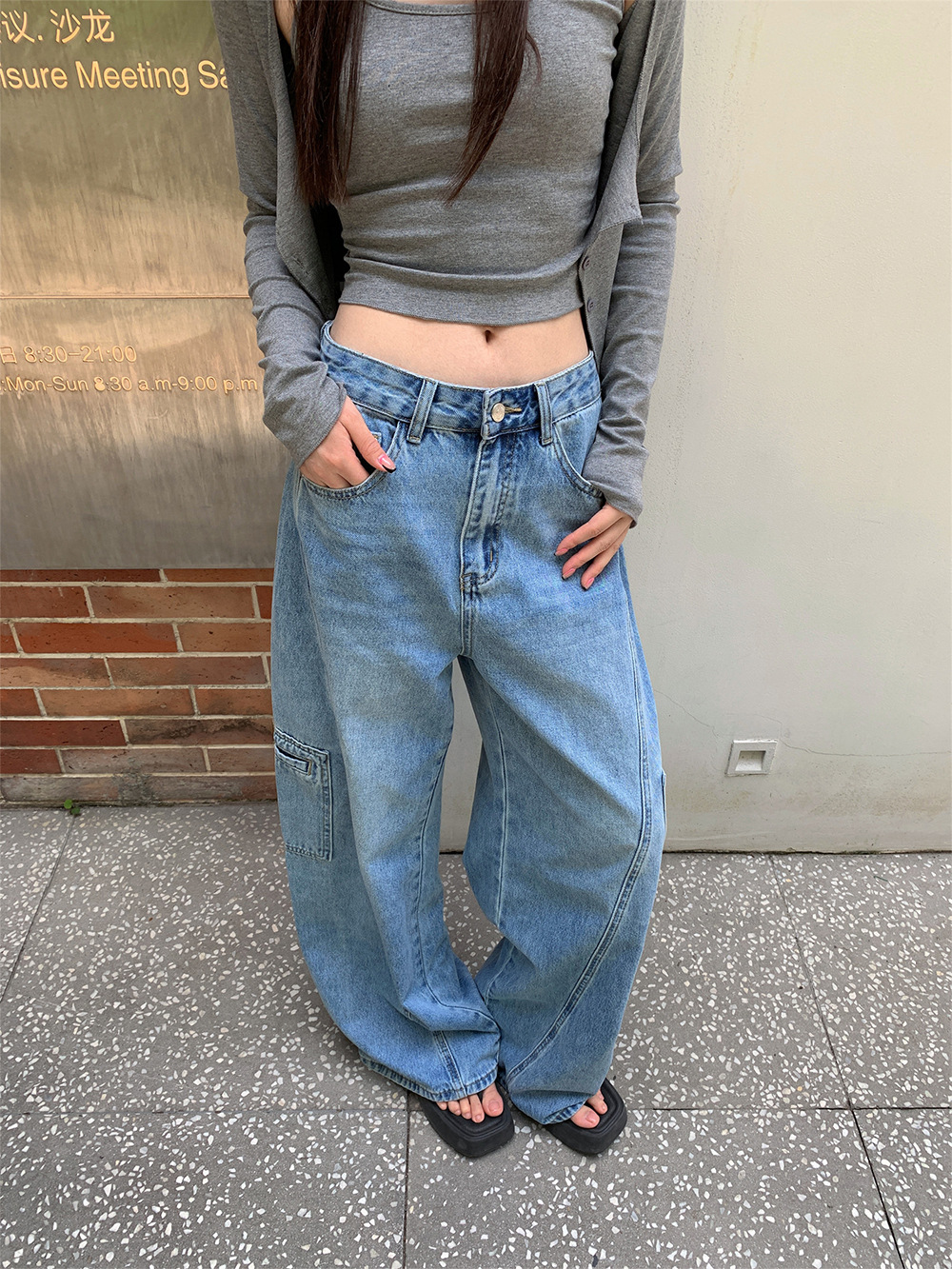 Product Name | Custom Vintage Distressed Jeans for Women – Loose Wide-Leg Baggy Cargo Denim Trousers |