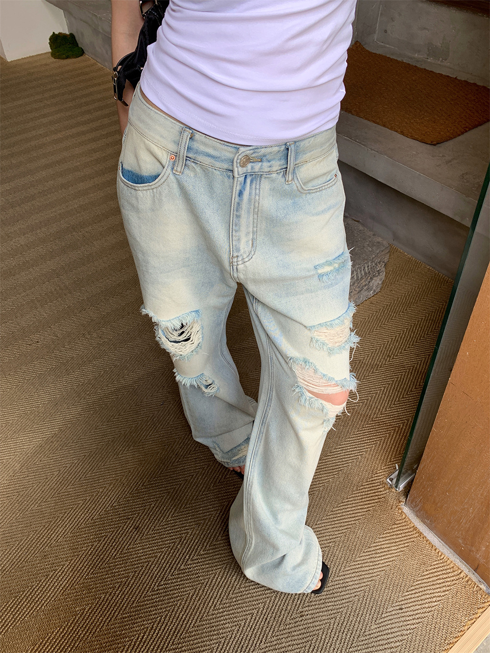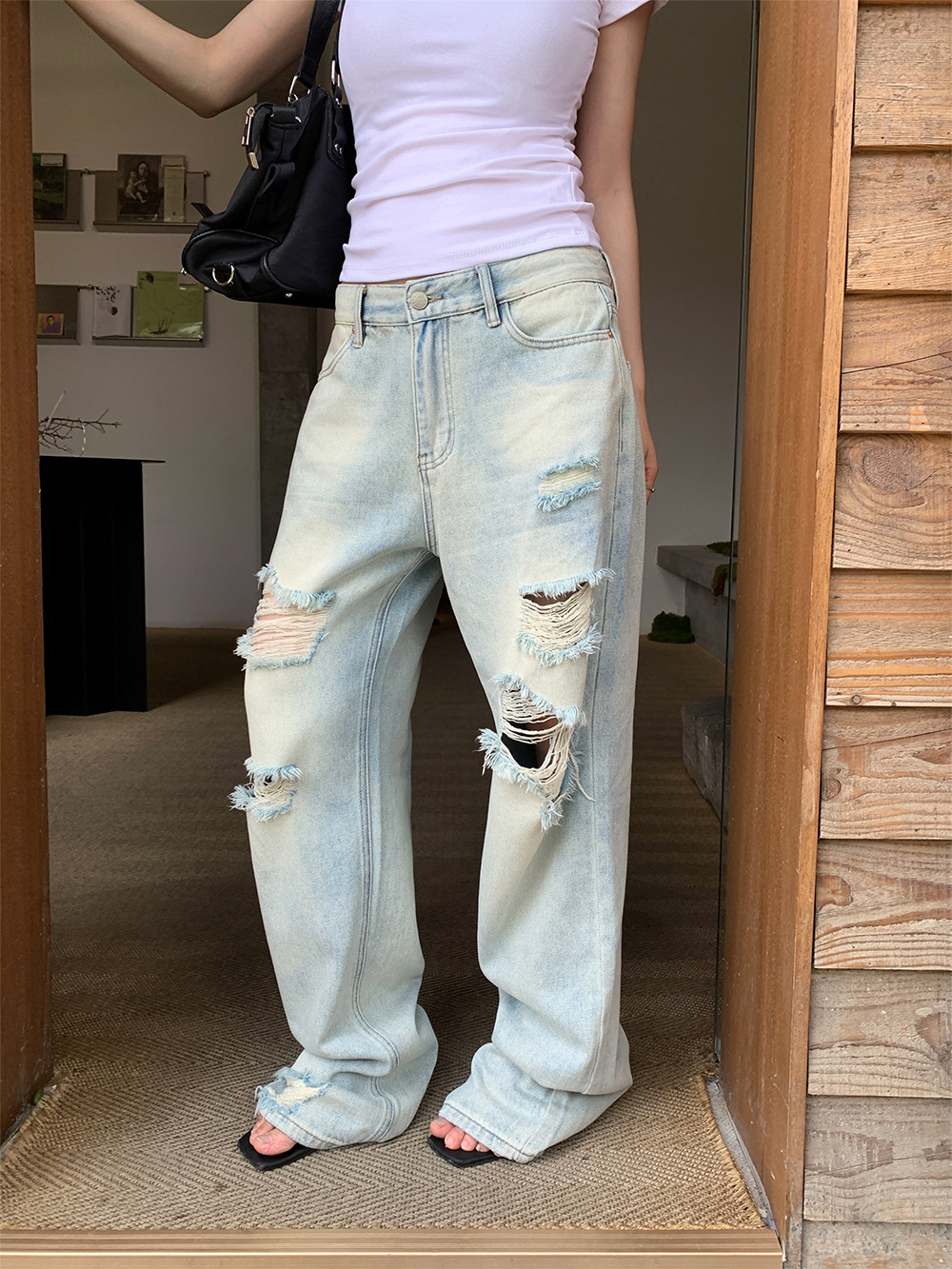 These ripped straight jeans are a wardrobe essential for women who love a vintage-inspired casual look. Pair them with a crop top for a Y2K vibe, an oversized sweatshirt for effortless streetwear, or a tailored blazer for a modern chic twist. Suitable for street fashion, daily casual wear, parties, or travel outfits.