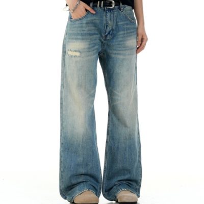 Custom Retro Washed Jeans | Wholesale Straight-Leg Denim