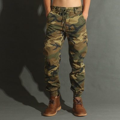 Custom Men’s Casual Camouflage Jogger Cargo Pants – Cotton Outdoor Trousers with Cuffed Hem