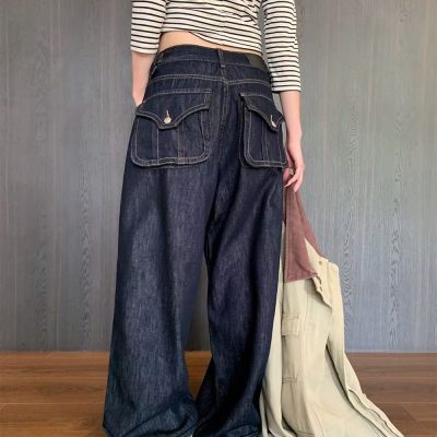 Custom Women’s Streetwear Baggy Jeans – Heavyweight Green Wide-Leg Cargo Pants with Large Pocket Design