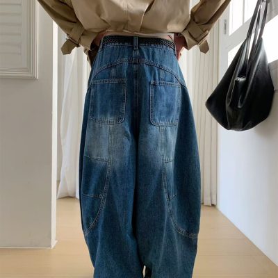 Custom Women’s Baggy Patchwork Scimitar Jeans – Loose Drape Wide-Leg Denim Trousers