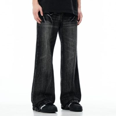 Wholesale Custom Retro Jeans | Washed Distressed Flared Denim