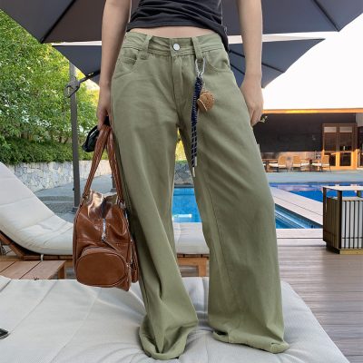 Custom Women’s Vintage Cargo Jeans – Loose Green Flared Bootcut Denim Trousers